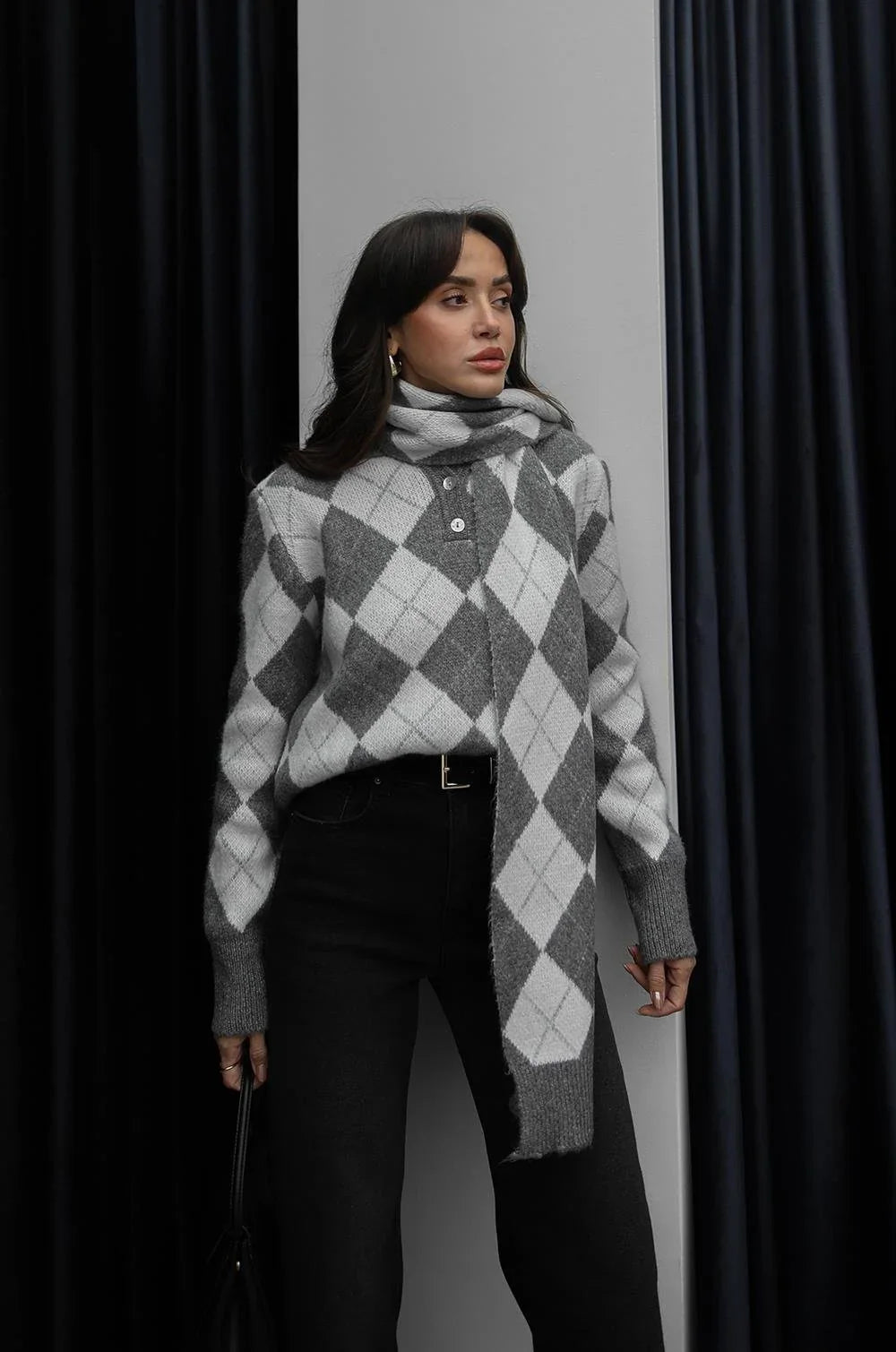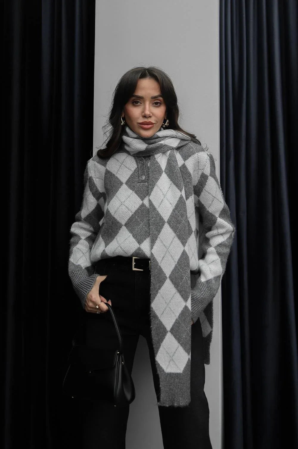 بلوزة سكني ملونة مع لفحة