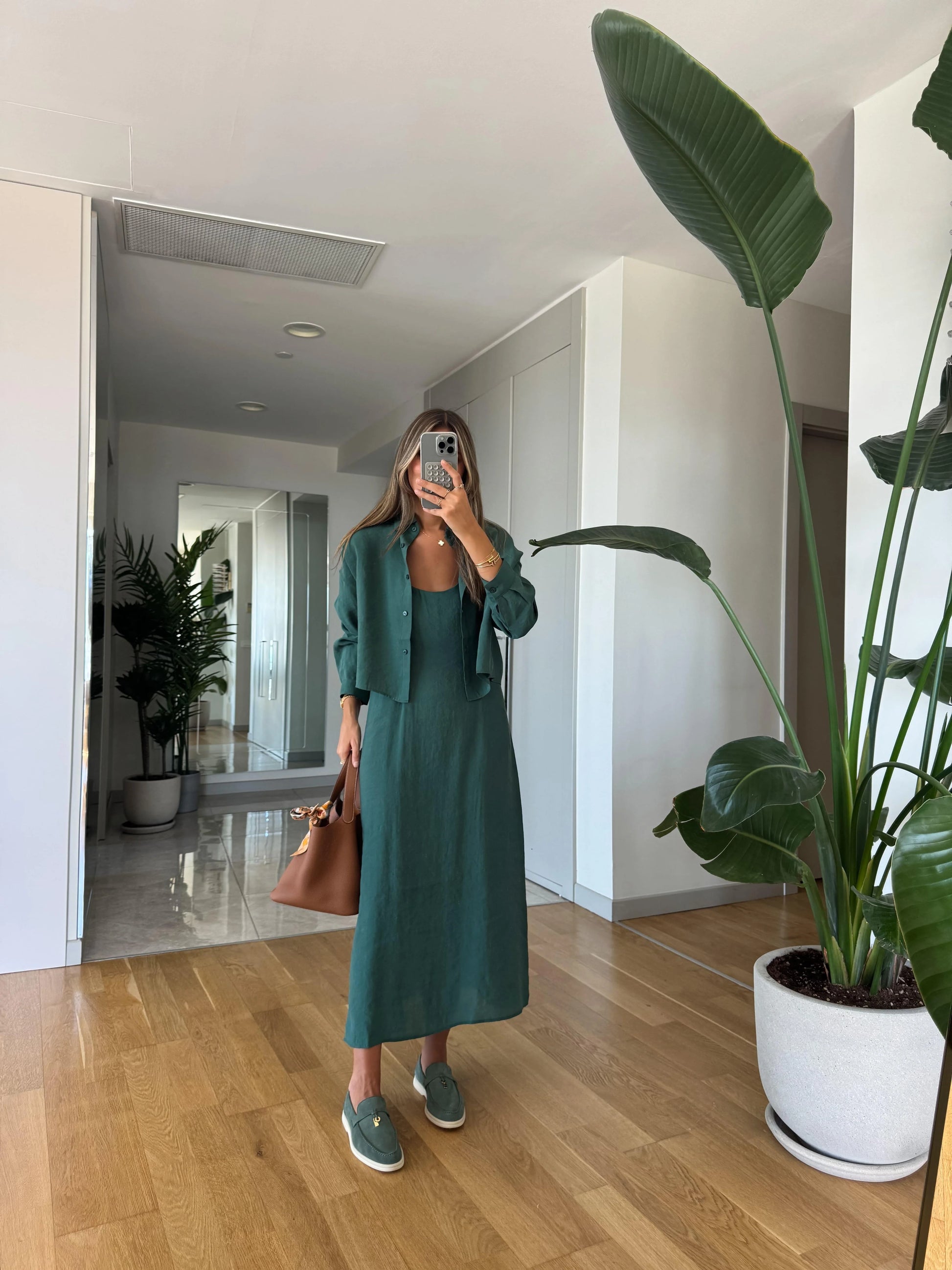 Increase quantity for طقم قميص مع فستان اخضر غامق